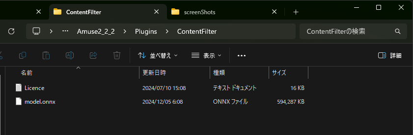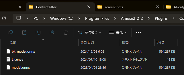C:\Program Files\Amuse\Plugins\ContentFilter の下にある、model.onnx を編集したものに置き換えます。