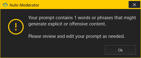 ただし、プロンプトにあからさまに NSFW なワードがあると弾かれます。